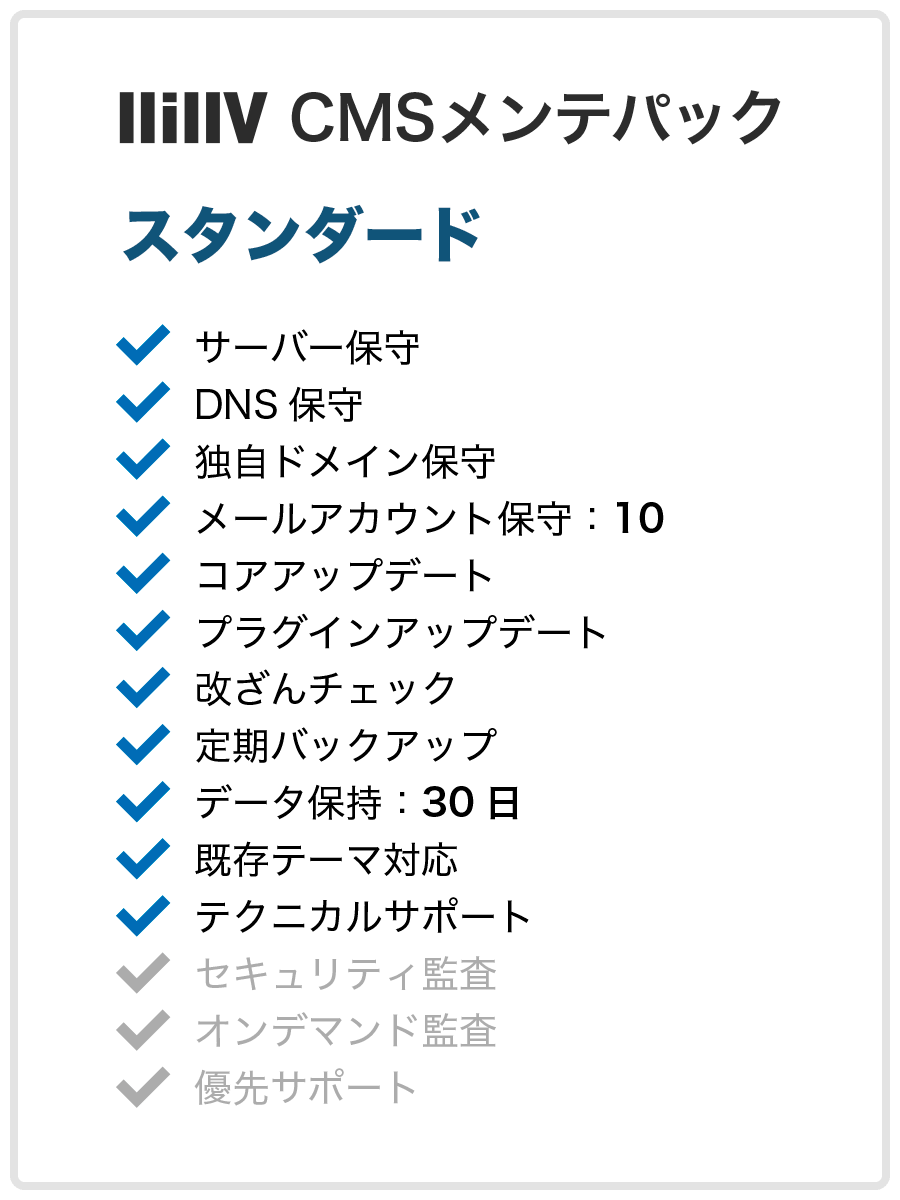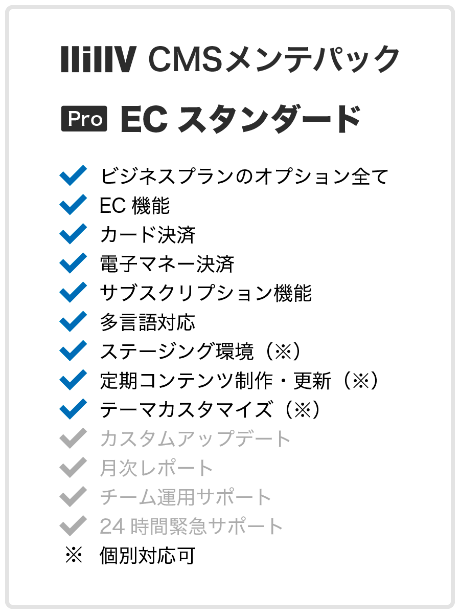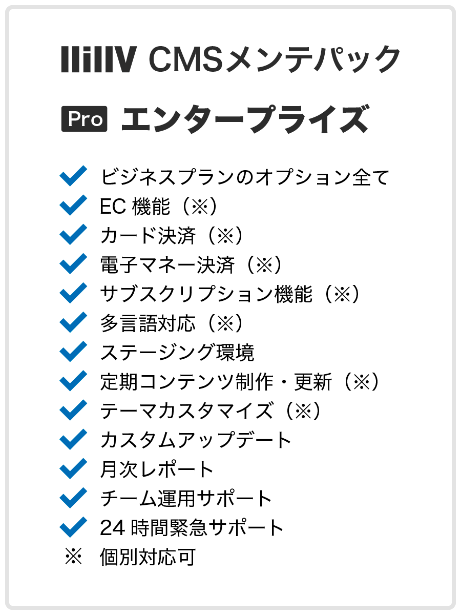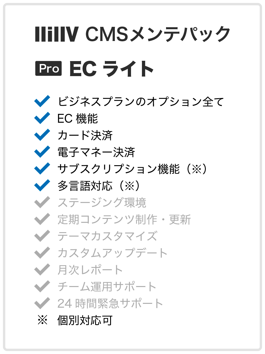 Sale CMSメンテパック – 更新オプション ¥55,000 Sale CMSメンテパック – エンタープライズ ¥38,500 Sale CMSメンテパック – ECスタンダード ¥27,500 Sale CMSメンテパック – ECライト ¥22,000 Sale CMSメンテパック – ビジネス ¥16,500 Sale CMSメンテパック – スタンダード ¥11,000 Previous 1 2 Next